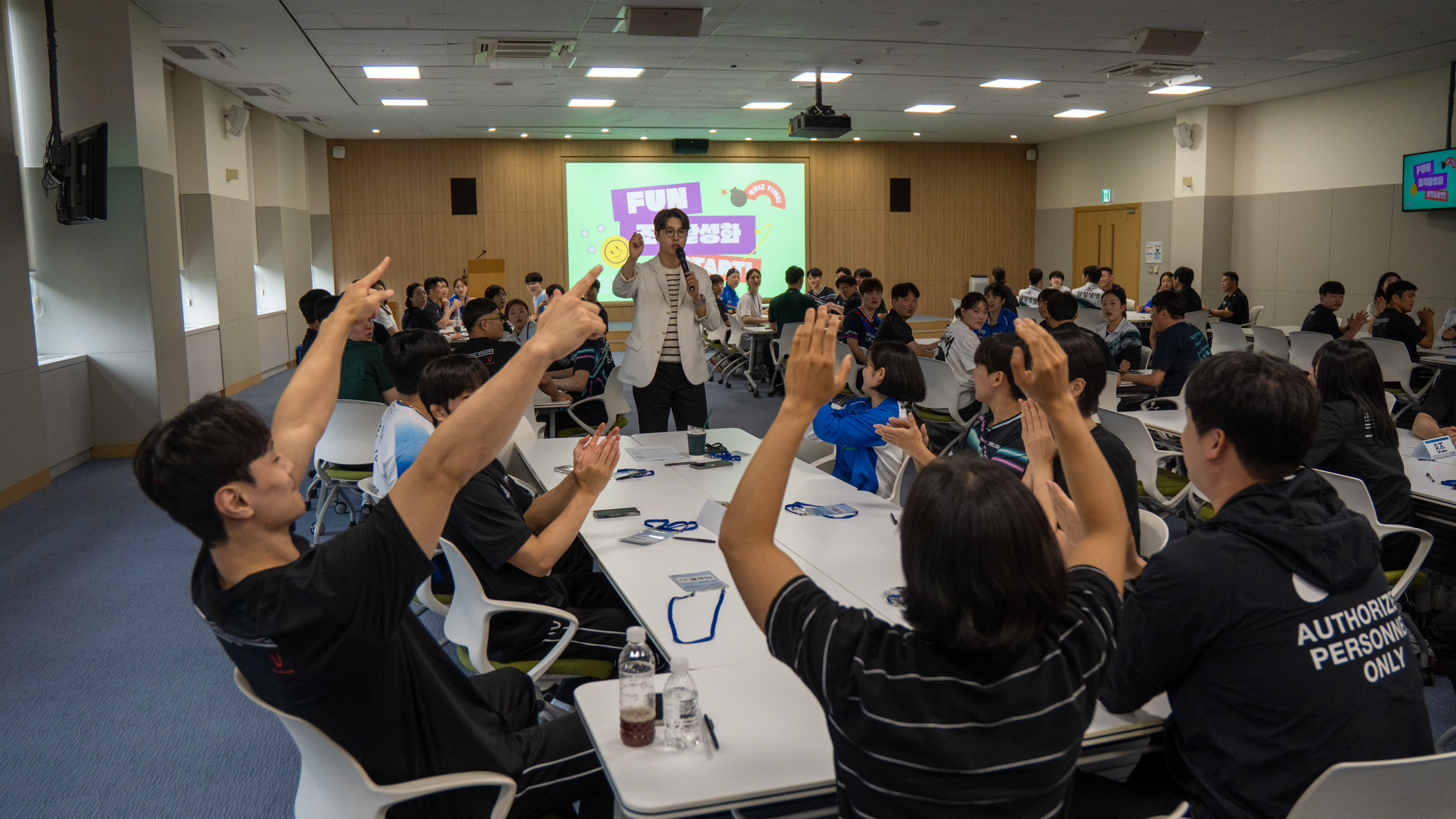 최고급 음향 시스템부터 무선 마이크, 프로그램 진행에 필요한 모든 팀빌딩 소품을 저희가 100% 준비해 갑니다. 담당자님은 참석자 명단과 일정만 공유해 주시면 됩니다.