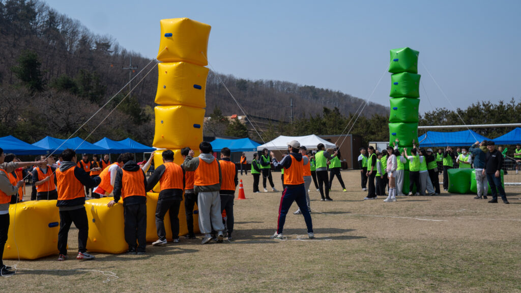 단순히 청군/백군으로 나누는 것을 넘어, 팀별 응원 구호와 게임 소품에 기업의 핵심 가치를 자연스럽게 녹여냅니다. 목청껏 서로를 응원하는 과정 속에서 끈끈한 소속감이 부여되고 현장의 열기는 최고조에 달합니다.